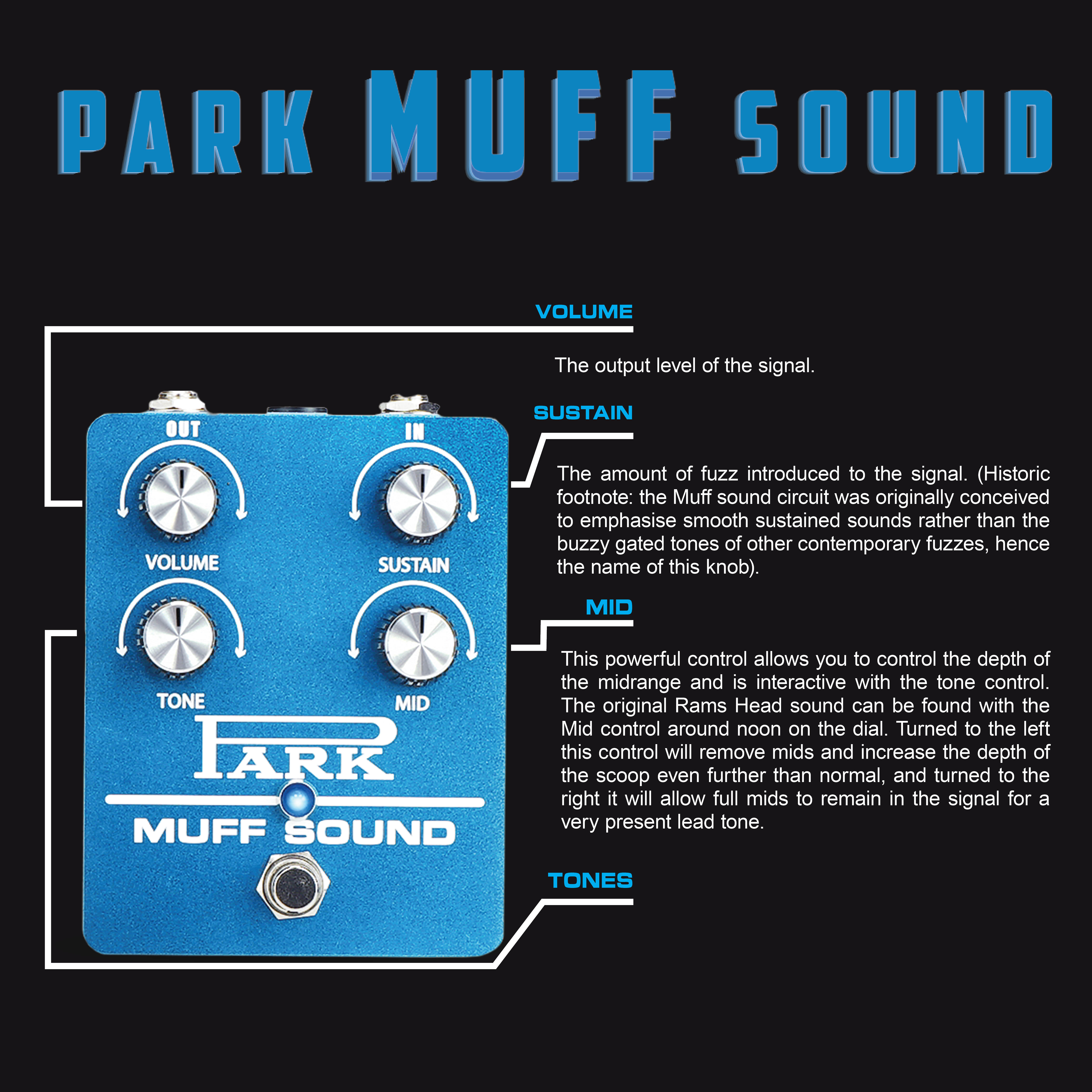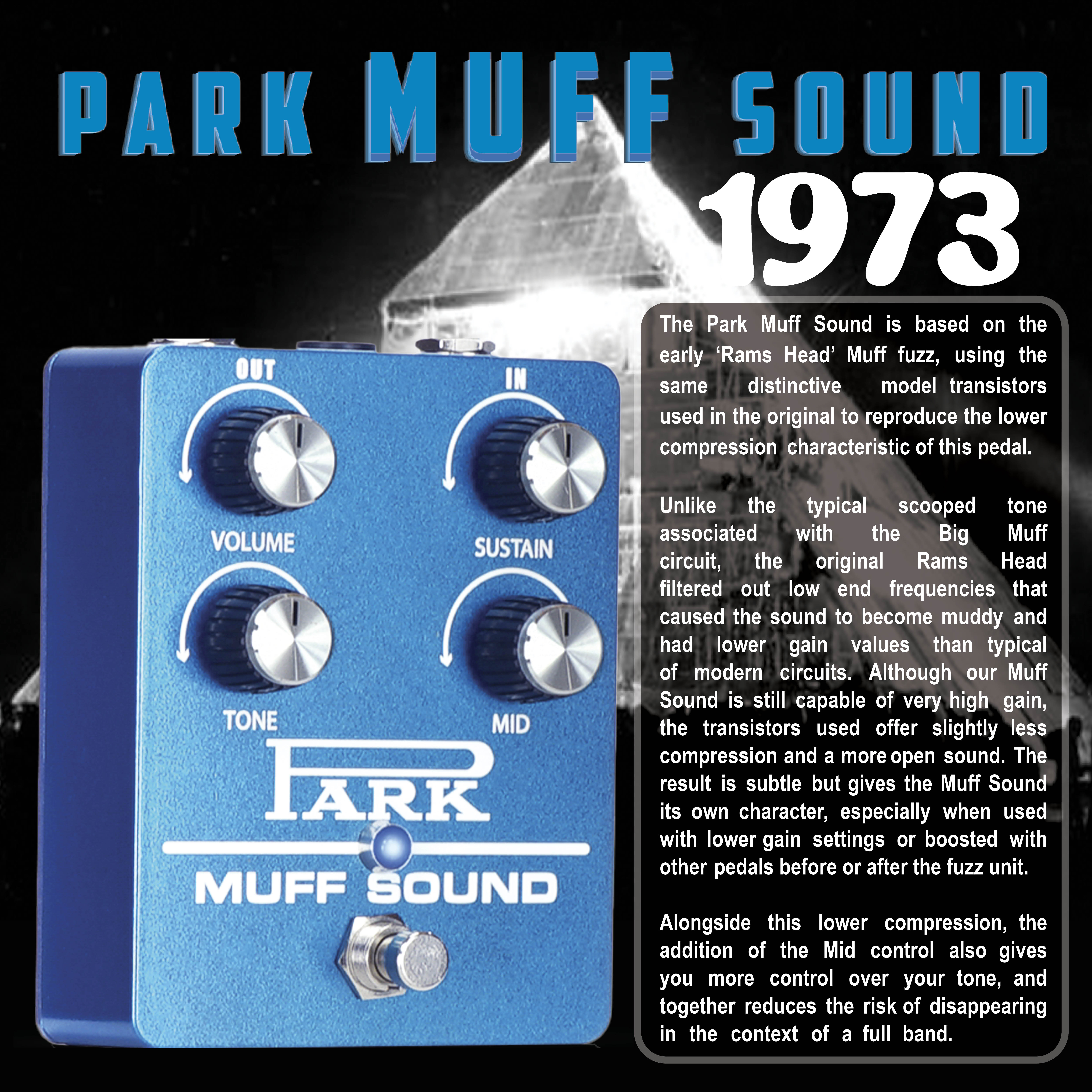 The Muff Sound is based on the early ‘Rams Head’ Muff fuzz with the addition of a variable ‘Mid’ control, using the same distinctive model transistors used in the original to reproduce the lower compression characteristic of this pedal.